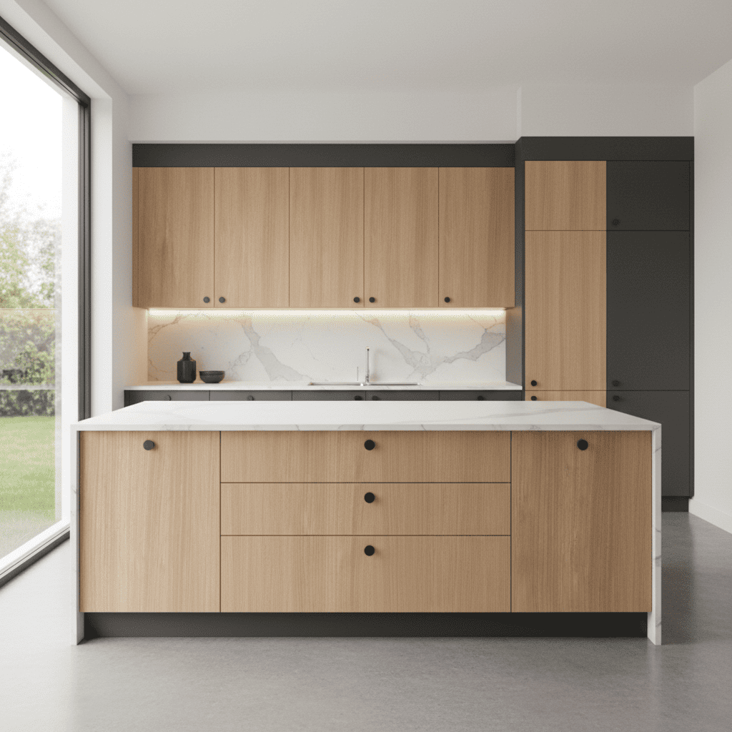 Forget the colors that suffocate the space! This material (PERSIAN NOCE 5069 SF) is the secret of lighting and comfort in your home: 🌿 Natural warmth: a light and warm wooden color, making the whole place spacious and comfortable for the eye (suitable for bedrooms and kitchens). 💼 Elegant grain: Elegant longitudinal veins give a professional look to desks and cabinets. 🎨